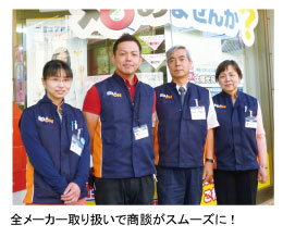 以前と違って全メーカーの商品が取り扱えるようになり、商談がし易くなった上、かつての経験を活かした地域店ならではの手厚いフォローもウリにしています。近所に14件あった電気屋さんが、今は4件。生き残れたのはほんと、エディオンのおかげです(笑)。